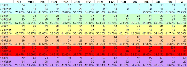 As for the one thing I haven't studied (or want to study and probably still won't), 3P% and 3PR seem like an important indicator of tourney advancement potential with 3P% being slightly more important than 3PR. My hypothesis would be teams with high 3PR and low 3P% could be potential upset victims (aka poor shooting teams or poor shot selection), and teams with high 3P% and balanced 3PR (not top 30 but not bottom 250 either) could be potential deep-runs (+PASE). If I had to postulate an ideal metric, it would be one that best predicts the NBA Finals as if it were a 1-game single elimination tournament (the NCAA structure). In theory, if the college game becomes more like the NBA style of play, the only difference is the tournament structure. On any given night, a bottom-standing NBA team can knock-off a top-standing NBA team, but in a best-of-7 format, the better team will win four games faster than the worse team. I believe the 3-point shot will explain a lot of this variability in outcomes.