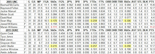 - The Return & Improve Model may be a very good tool for next year. Going by the preseason top-25, DUKE, PUR, MIST, MARQ, and TXAM return close to 80% of their minutes from last year (which probably means they will return 70-80% of their production). This means DUKE should be good for 2 wins, PUR should be good for 1 win, MIST should be good for 3 wins, MARQ should be good for 2 wins, and TXAM should be good for 1 win, as long as they don't suffer injuries, drop in seed line from last year, and don't run into critical match-ups in the bracket.
